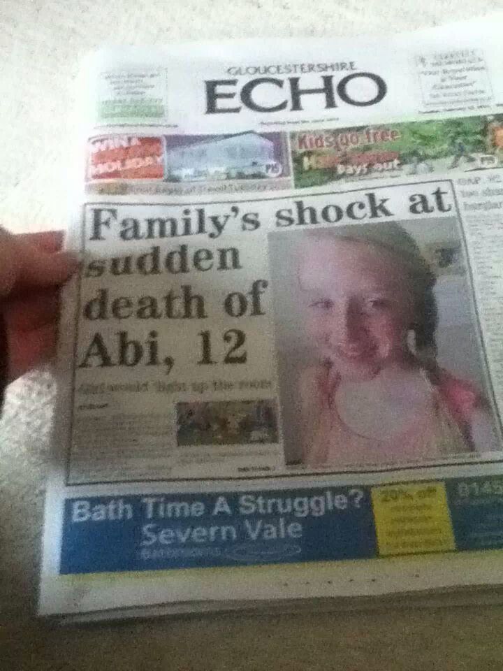 It’s difficult to describe what it was like to see her on the front of the local paper, to see her face on A boards in the street. But, for whatever reason, it felt right. I’m not an attention seeker, far from it, but I wanted Abi’s life and death to be known about. I wanted the details to be accurate.