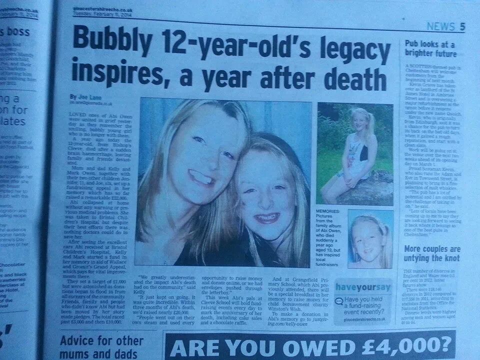 Following on from that article, Abi’s story was covered many times, daily initially. Mostly they promoted the various fundraising events or community things done in Abi’s memory. I felt the articles really helped the wider community understand what had happened and to see the positive that can come from such tragedy.