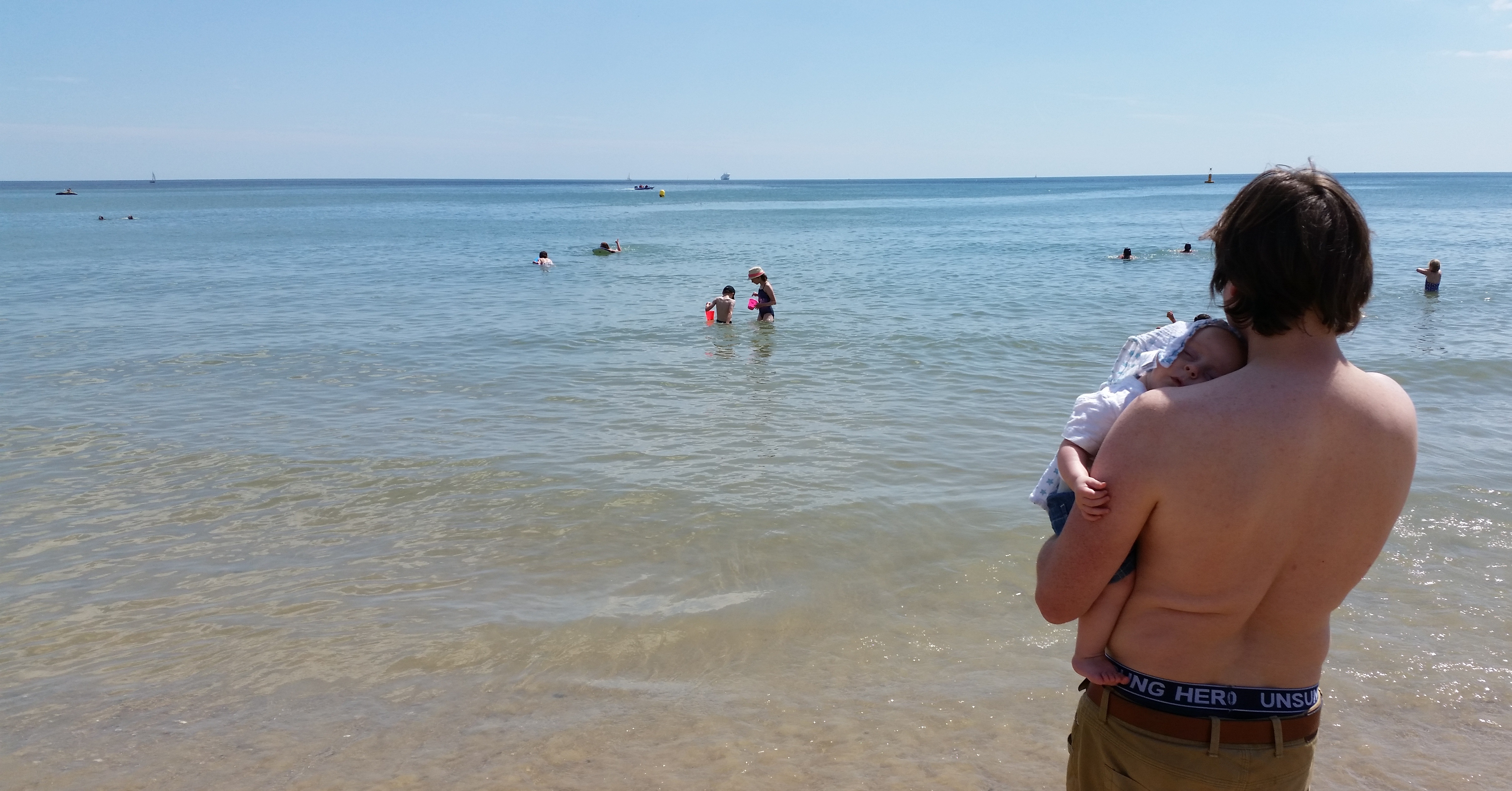 I was chatting with my daughter and holding the baby when an angelic-looking girl, blonde hair, blue eyes, came running over. She was about 13. She had a body board in her hand and asked us, my daughter, if she wanted it as she’d just bought a new one and didn’t need it anymore. There was nothing wrong with this board, she just wanted to give it away.
