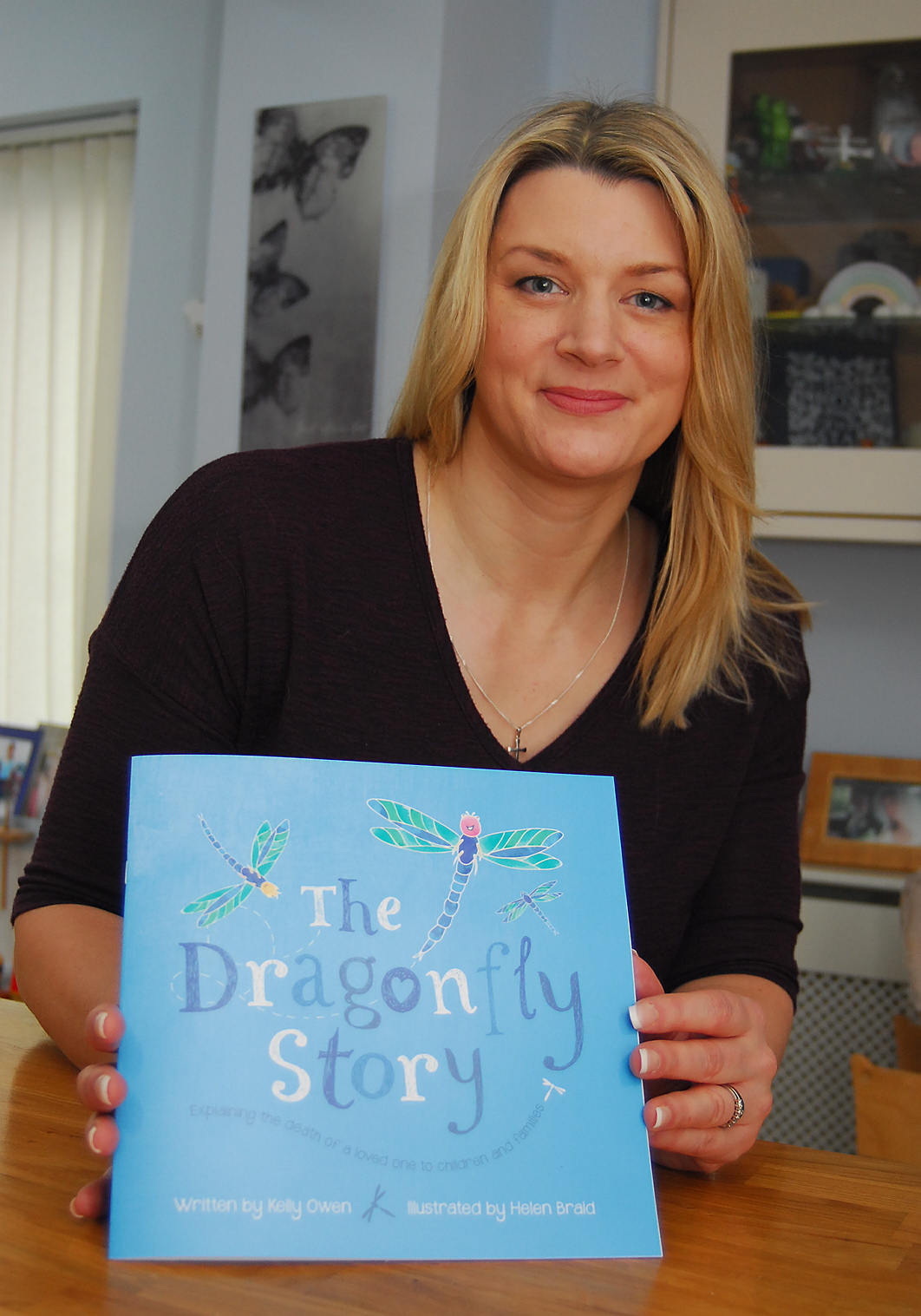 Previous Image CHMW20180412A-003_C Kelly Owen with her book for children about coping with the death of a loved one Picture by Mark Watkins Like Loading...